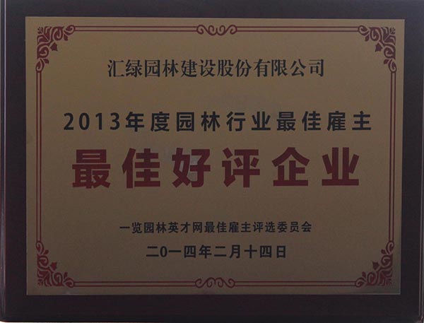 汇绿园林荣获2013年度进赣施工质量管理先进企业