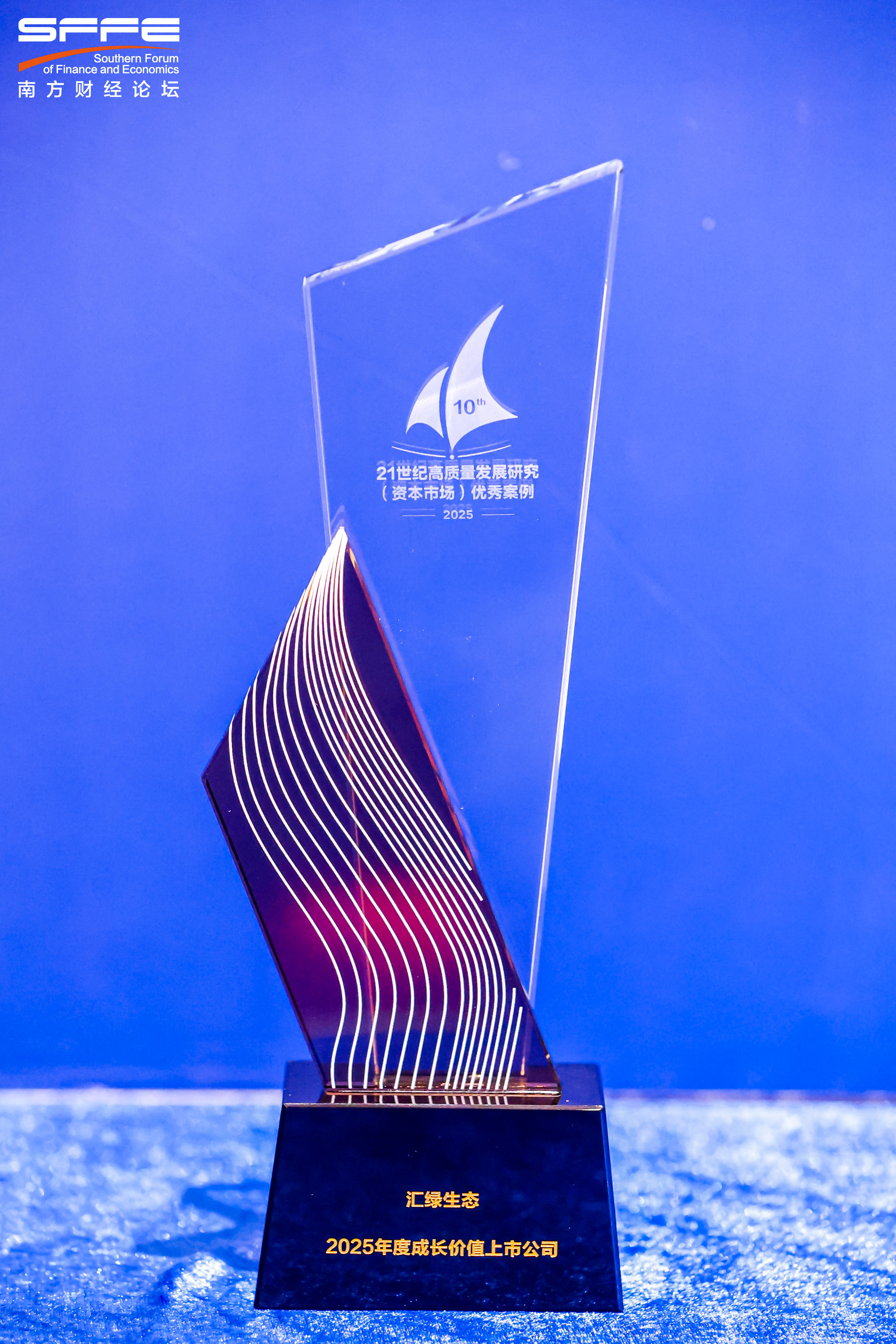 论坛期间发布了21世纪高质量发展研究(资本市场)优秀案例,主要聚焦于公司治理、信息披露、ESG实践与投资者关系管理等方面的标杆企业。汇绿生态(001267.SZ)凭借卓越的业绩增长能力、稳健良好的市值表现以及可持续性的产业价值贡献,成功入选并荣获“2025年度成长价值上市公司”。
